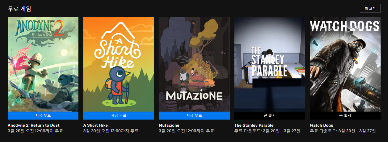 | 무료게임] ~3월27일 The Stanley Parable, Watch Dogs (0) | 2020.03.21 |